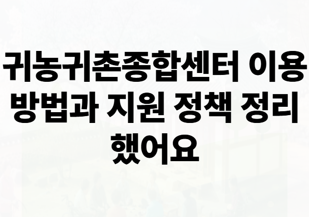 귀농귀촌에 관심이 있다면 꼭 알아야 할 기관이 바로 귀농귀촌종합센터입니다. 이곳은 농림축산식품부와 지자체가 함께 운영하는 공식 창구로, 귀농·귀촌 희망자들에게 필요한 정보를 통합 제공하고 있습니다.