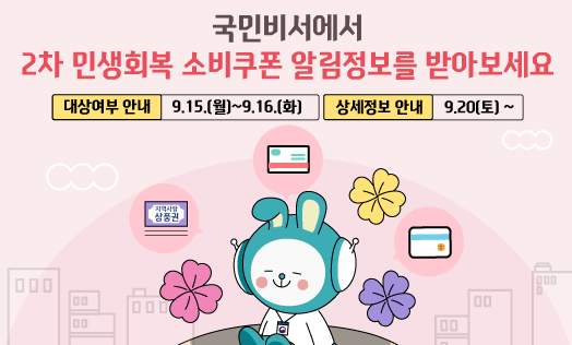 국민비서 알림서비스를 미리 신청하셨다면, 지급 대상 여부와 신청 방법 등을 알림으로 받을 수 있습니다.