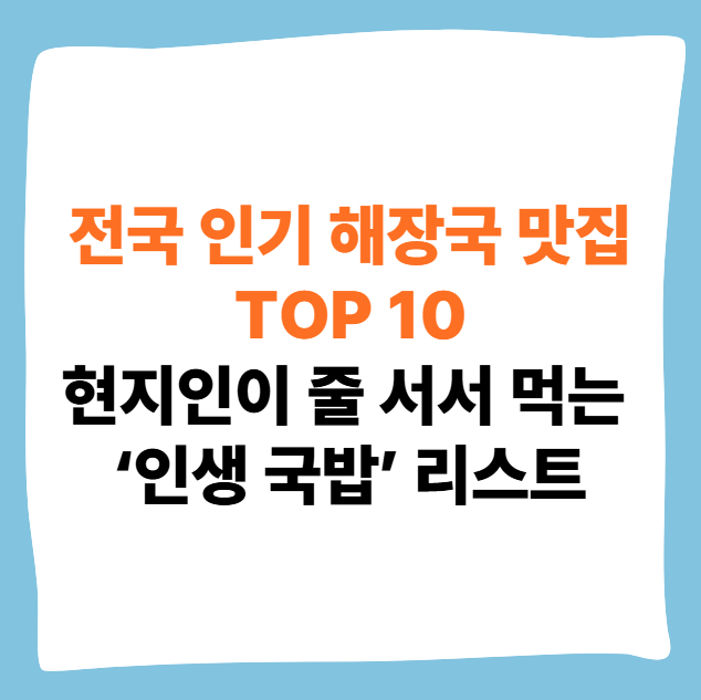 전국 인기 해장국 맛집 TOP 10, 현지인이 줄 서서 먹는 ‘인생 국밥’ 리스트