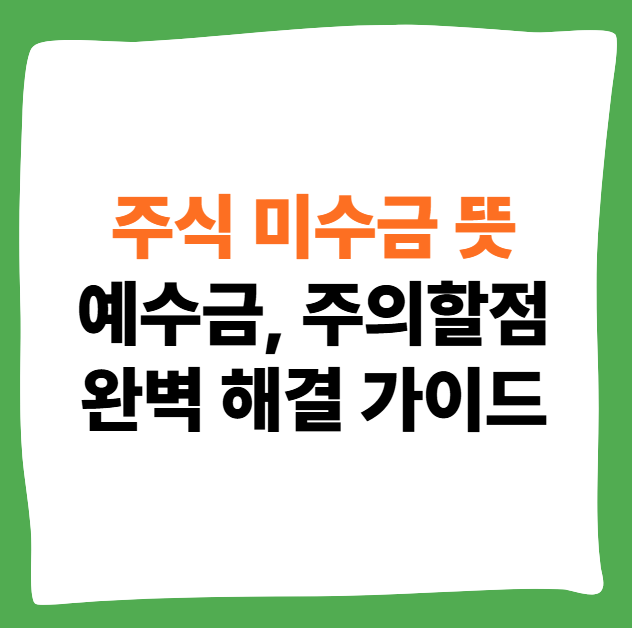 주식 미수금은 거래 시스템을 완전히 이해하지 못했을 때 발생하는 가장 치명적인 실수 중 하나입니다. 예수금의 정확한 정의와 $T+2$ 결제 시스템을 이해하는 것이 안전한 투자의 첫걸음입니다. 최종 전문가 기준은, 매매 시 **'현재 출금 가능한 예수금'**이 얼마인지 확인하는 습관을 들이는 것입니다. 다음 단계로 넘어가기 전에, 주식 매수 시 적용되는 증거금률의 종류와 계좌 설정 방법을 추가적으로 확인해보시기를 권장합니다.