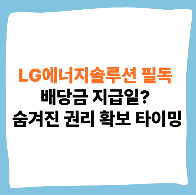 LG에너지솔루션 주주 여러분, "내 배당금은 언제 들어오지?" 이 질문에만 집중하면 오히려 손해를 볼 수 있습니다. 실제 돈이 입금되는 LG에너지솔루션 배당금 지급일보다 훨씬 중요한 배당 권리를 확보하는 결정적인 타이밍을 주식 전문가의 시각으로 쉽고 명확하게 정리했습니다. 딱 5분만 투자해서 현명한 배당 투자 전략을 완성하세요.